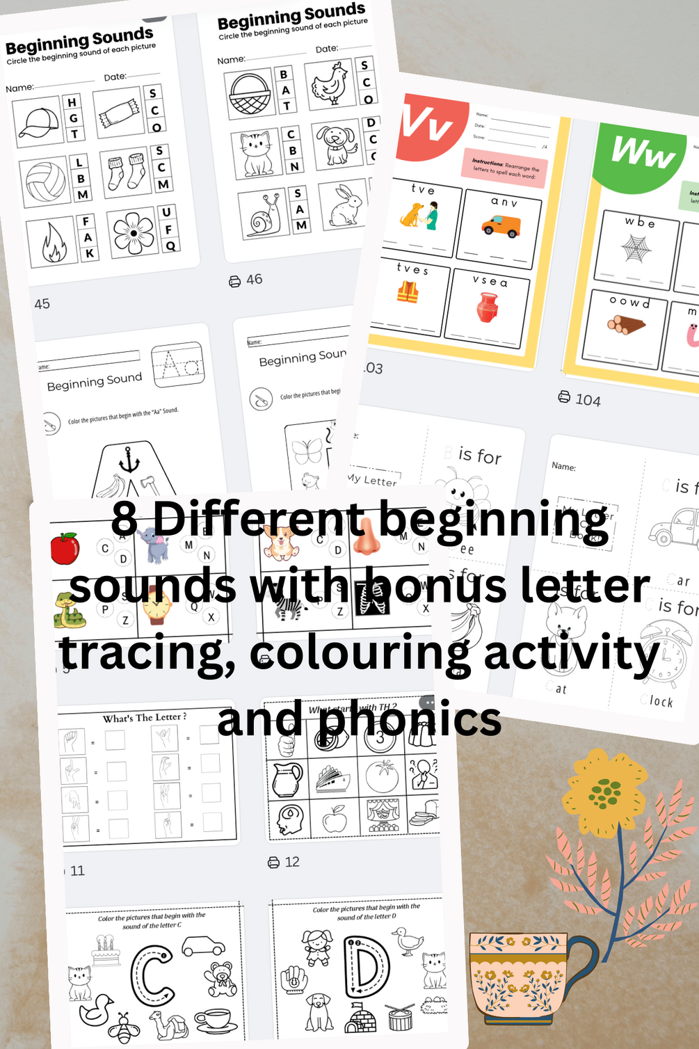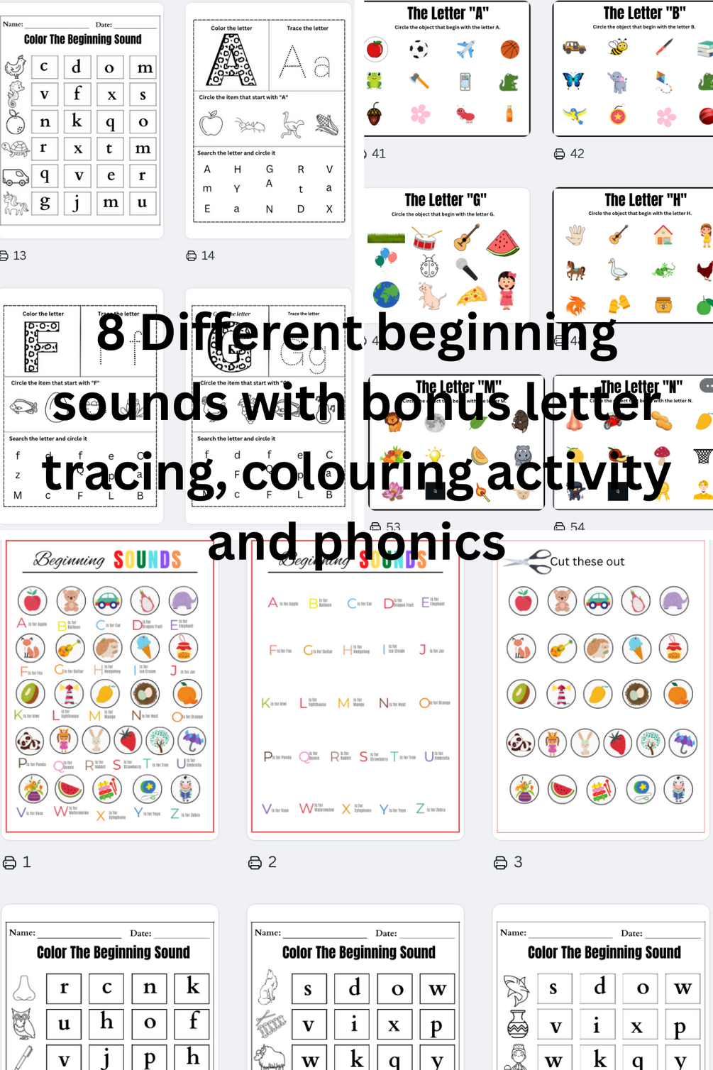 Beginning Sounds Worksheet Practice,Spelling Activities,Lettering Trace and more